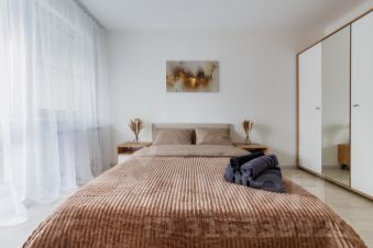 Большие двуспальные кровати в каждой комнате и раскладной диван на 2 места