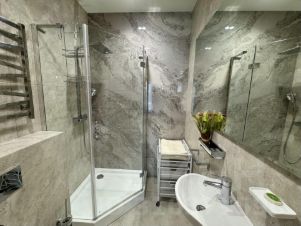 Сдается впервые, ремонт завершен в июне 2025г. Премиальные материалы: натуральный камень, керамогранит, паркет. Приточная вентиляция и кондиционирование. Зона кухни и столовой совмещена с гостиной, в каждой спальне ванная комната , в прихожей с/у и гардеробная.