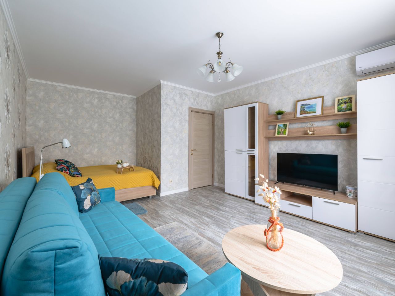 В квартире есть: шторы black out (полная темнота); wi-fi; тв-каналы + smart TV; холодильник; электрическая плита (с духовкой); микроволновка; чайник; фильтр для воды; вся посуда; стиральная машина; фен; средства гигиены (шампунь, гель, зубная паста, мыло, бумага); утюг; сушилка для белья; кондиционер; балкон.