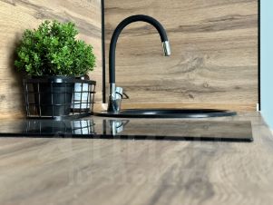 - Кухня с холодильником, плитой, микроволновкой, чайником и посудой