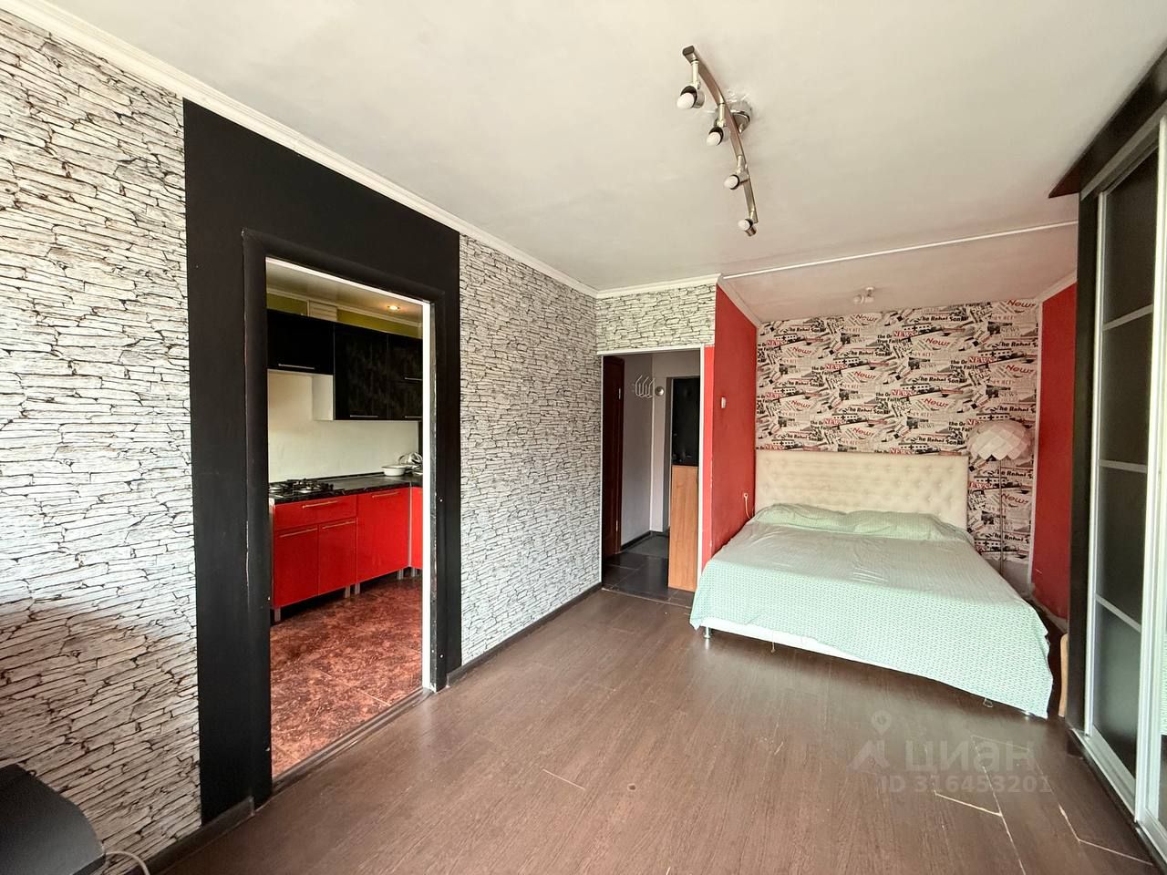 В комнате и на кухне есть вся необходимая мебель. Встроенная бытовая техника включает холодильник и стиральную машину, а также газовую плиту и микроволновую печь. В совмещенном санузле установлена душевая кабина. Также имеется балкон, где можно наслаждаться утренним кофе.