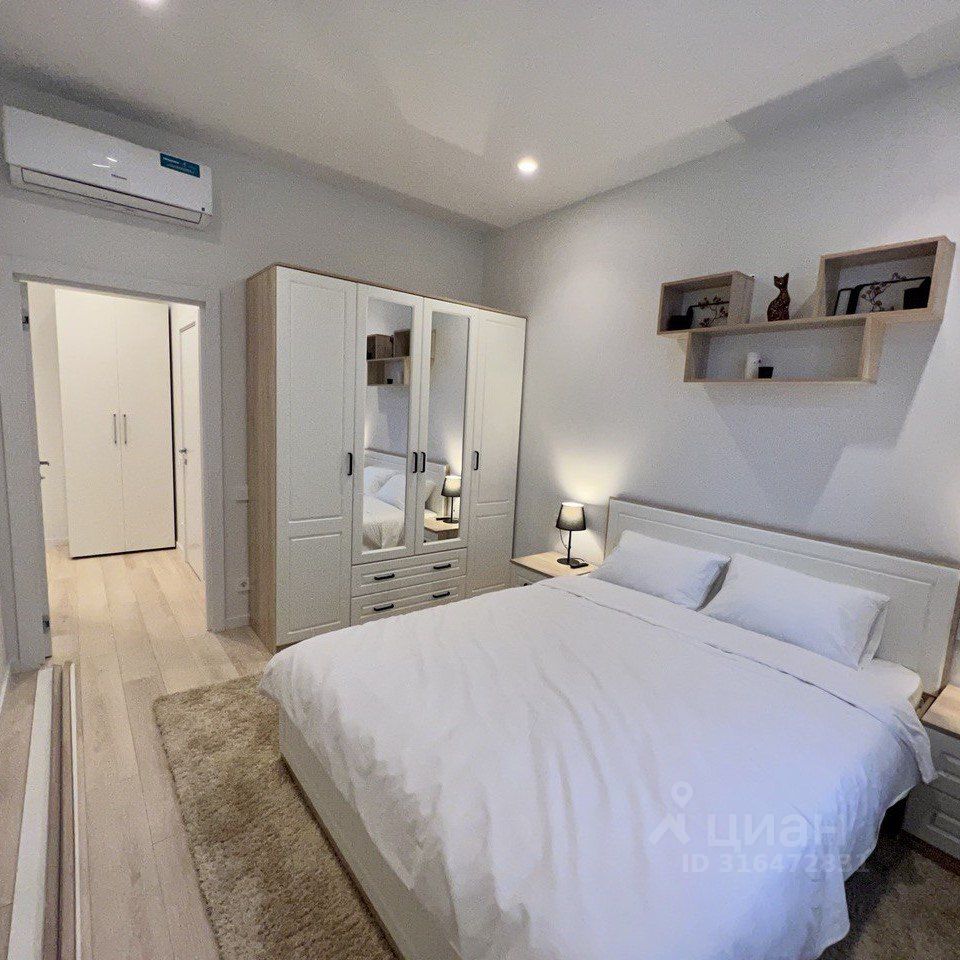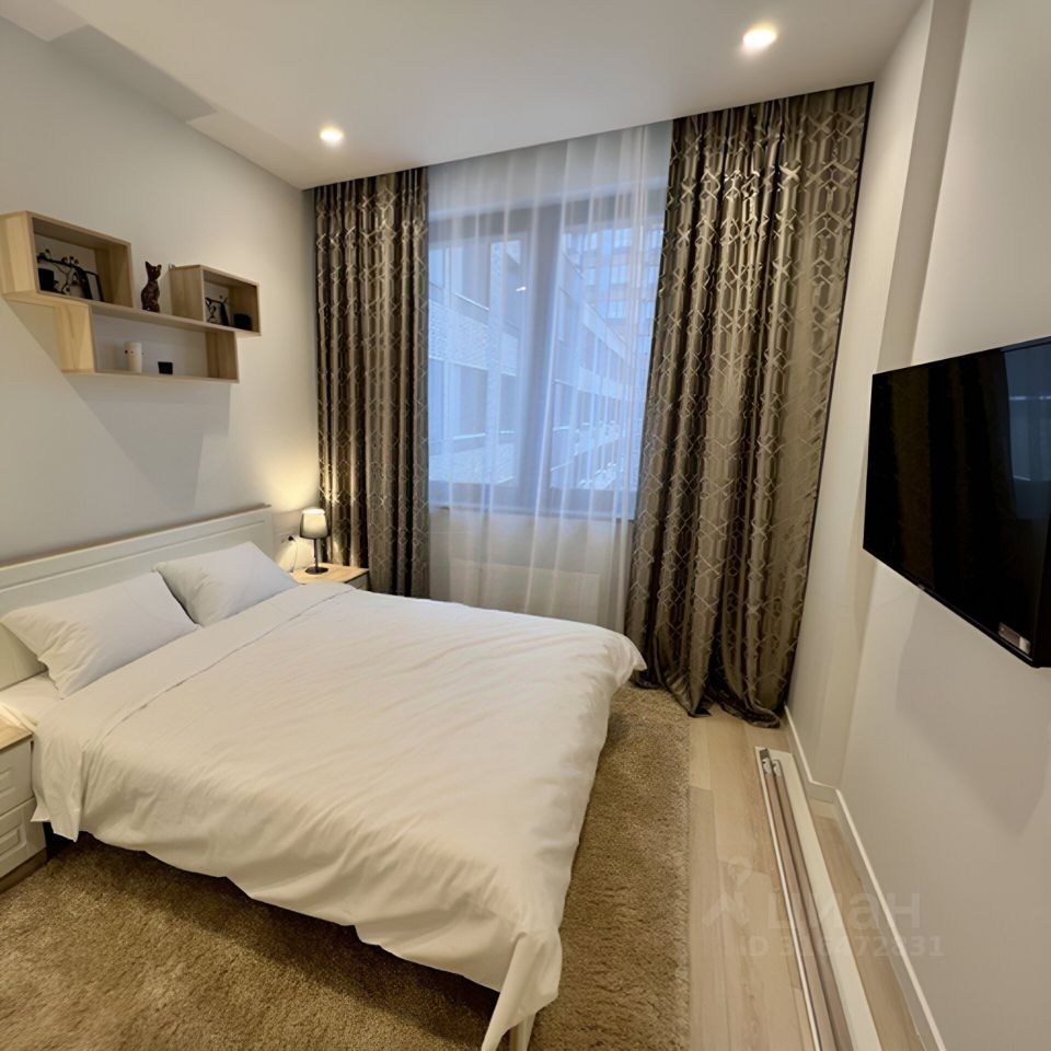 - Спальня: кровать евро, ортопедический матрас, прикроватные тумбы, многофункциональный шкаф, телевизор).