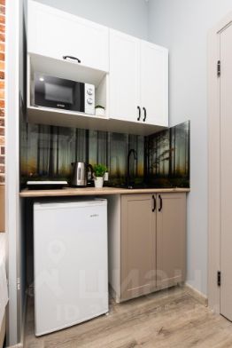 - Кухня с холодильником, плитой, микроволновкой, чайником и посудой