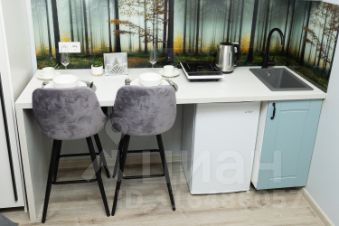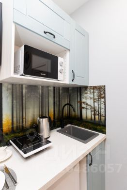 - Кухня с холодильником, плитой, микроволновкой, чайником и посудой