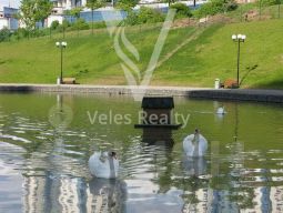 Подземный паркинг, тихий, зеленый двор с прудом и детской площадкой.