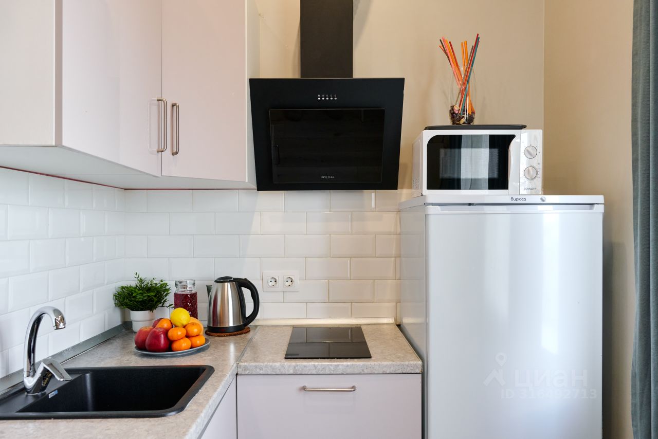 - Кухня с холодильником, плитой, микроволновкой, чайником и посудой