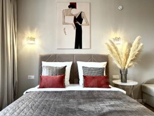 • продуманная система сна: премиальный ортопедический диван, дорогое постельное белье страйп-сатин;