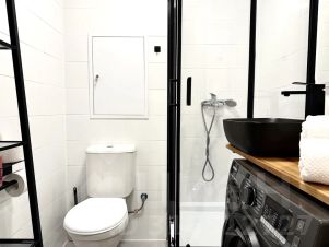 - в квартире есть вся бытовая техника и мебель (фен, утюг, гладильная доска, стиральная машина, плита, холодильник, СВЧ-печь, обеденная зона, шкафы, посуда для приготовления пищи и т.д.);