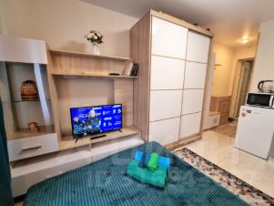 Залог в сумме 2000₽ оплачивается при заселении .Возвращается в день выездам Обращайтесь, квартир много.В студии нет плиты для приготовления пищи