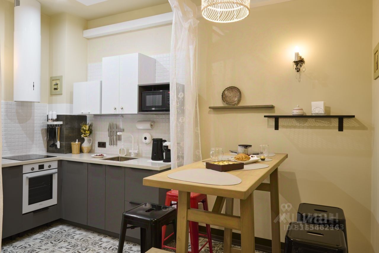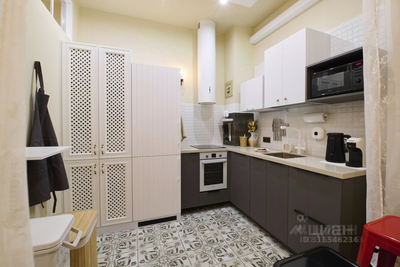 Стильный дизайн квартиры дополнен элегантной мебелью и всей необходимой для комфортного проживания техникой.