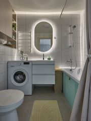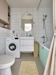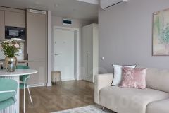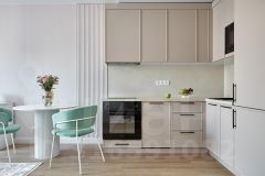 Квартира оборудована необходимой мебелью и бытовой техникой, включая посудомоечную машину, духовку, вытяжку, 3-х комфорочную плиту. Также есть гардероб, раскладывающийся диван и кровать с подъемным механизмом. Оптимально для одного человека или пары. Без животных.