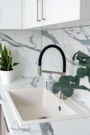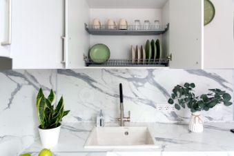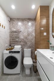 - Стиральная машина с сушкой, посудомоечная машина, микроволновая печь, чайник, фильтр для воды на кране, гладильная доска, утюг, сушилка для белья и фен.