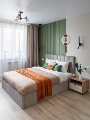 - В комнате большая кровать шириной 160 см с ортопедическим матрасом и раскладной диван 120 см.