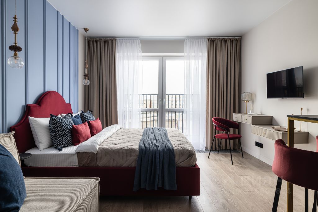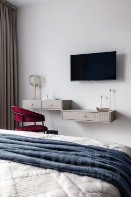 В спальной зоне вас ждет удобная двуспальная кровать с ортопедическим матрасом, чистое и свежее постельное белье, шторы блэкаут.