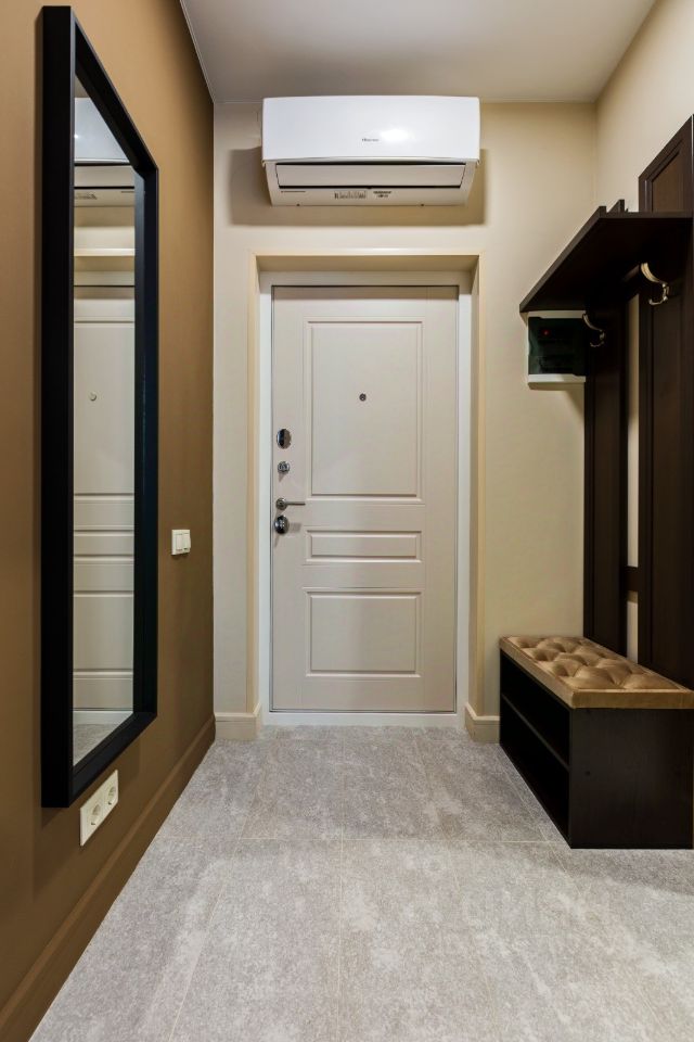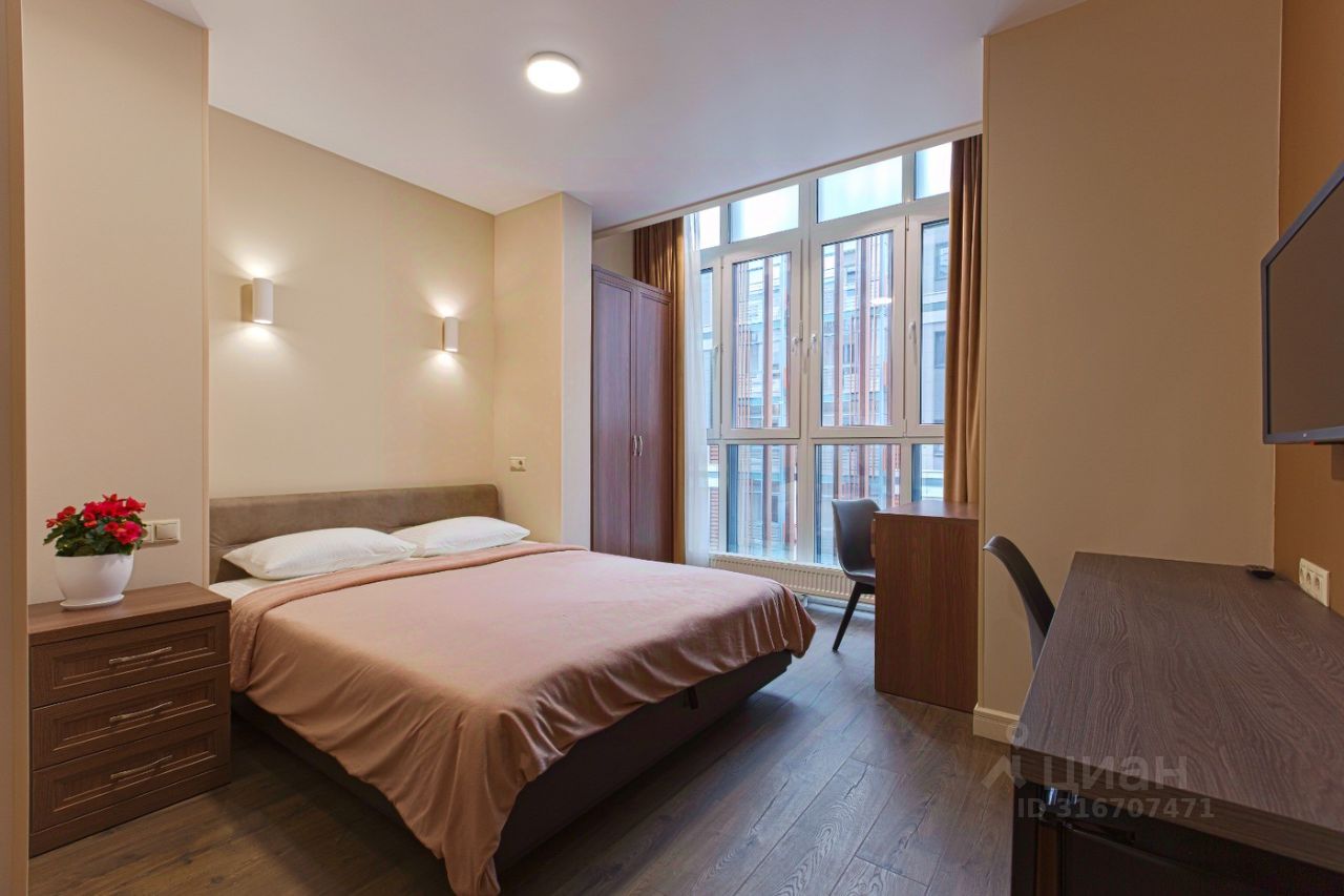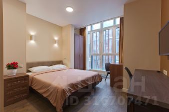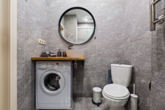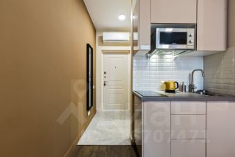 Квартира выполнена в дизайнерском стиле, с продуманной планировкой и качественным ремонтом. В студии есть вся необходимая мебель и техника: кондиционер, холодильник, телевизор и стиральная машина. Ванная комната оснащена современной душевой кабиной.