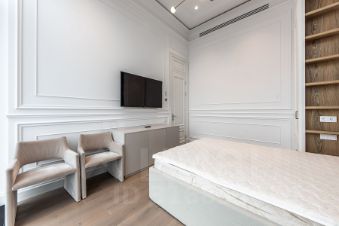 Внутри апартаментов выполнен дизайнерский ремонт, предусмотрено все для комфортной жизни. В каждой комнате есть мебель, а на кухне установлен полный комплект современной техники.