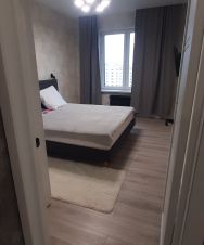 Про КВАРТИРУ: Общая площадь = 43м2, спальная комната: 18м2, + гостинная кухня 16м2, с/у совмещенный, из кухни секретные окна на балкон (ОФИС / или кабинет), Квартира располагается на высоком 17 этаже. Состояние дизайнерский проект от Alexy. Вместительный встроенный шкаф - ЗАЕЗЖАЙ и ЖИВИ!.солнечная квартира с красивым видом из окна, сантехника grohe, посудомоечная и стиральная машина, вытяжка, на кухне и в коридоре плитка в спальне комнате - на заказ кровать + Шкаф. На лестничной площадке тихие соседи.