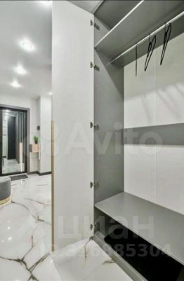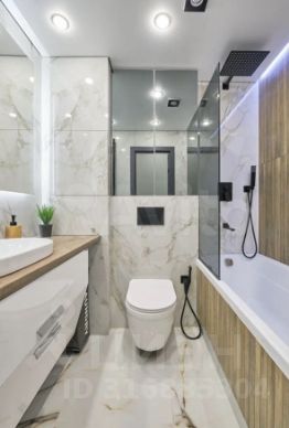 Санузел: пол керамогранит с подогревом, вместительная ванна, душевая система скрытого монтажа с тропическим душем, зеркало с подсветкой, вытяжка, дизайнерский полотенцесушитель, раковина, смеситель скрытого монтажа, инсталляция, зеркальный шкаф, люк для доступа к коммуникациям. Парящий потолок с подсветкой.