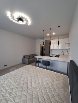 Впервые сдается удобная студия в новом жилом комплексе бизнес-класса "Stellar Sity" с хорошим ремонтом из качественных и дорогих стройматериалов, делали для себя. Новый ЖК с хорошей транспортной доступностью. Метро Кунцевская, Славянский бульвар 10 минут. Автобус ходит каждые 5 минут. Вся мебель и бытовая техника новая, встроенный кухонный гарнитур со всей бытовой техникой - большой 2-х камерный холодильник, духовка, СВЧ, вытяжка, плита электрическая стеклокерамика. Двуспальная кровать с матрасом новая. Кондиционер. Для одежды большой встроенный шкаф- купе. Окна большие, панорамные, качественные стеклопакеты с широкими каменными подоконниками. Квартира очень светлая , теплая. Высокие потолки , больше трех метров, много воздуха. Красивая и современная входная группа, чистый подъезд, консьерж, видеонаблюдения, охрана.