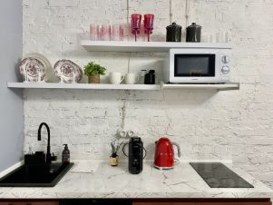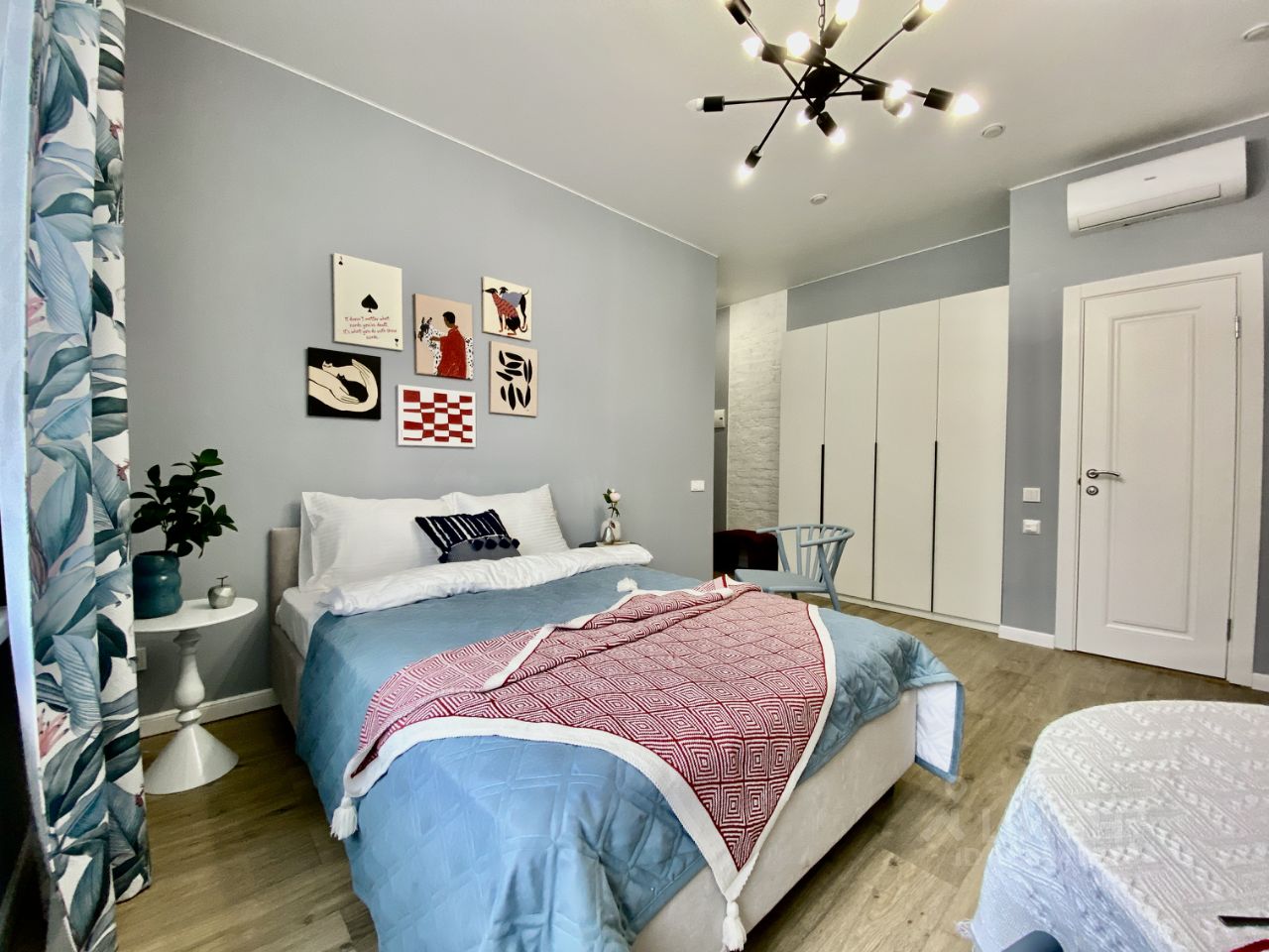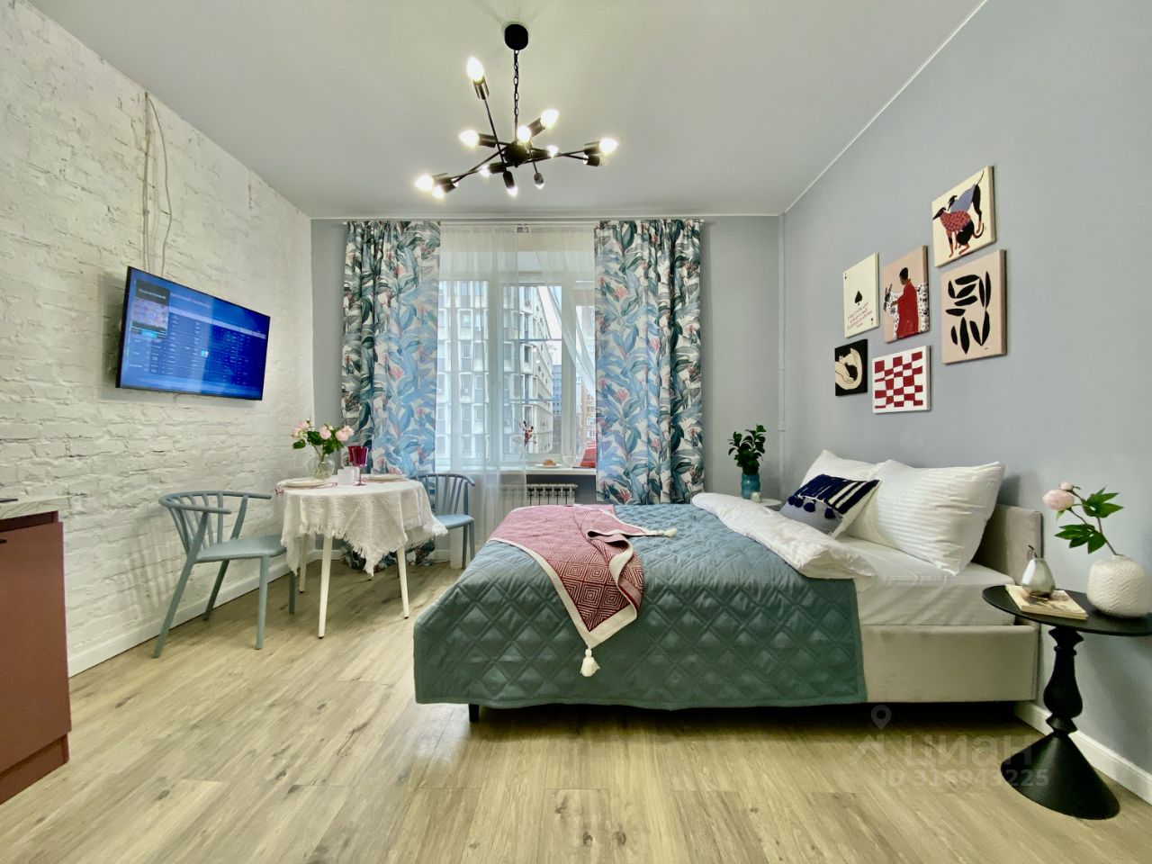 Уютная студия с дизайнерским ремонтом, полностью оборудованной кухней и всем необходимым для идеального отдыха или работы. Бесконтактное заселение 24/7 — заезжайте в любое время!"