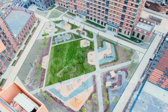 Внизу детские площадки и прогулочные дорожки.