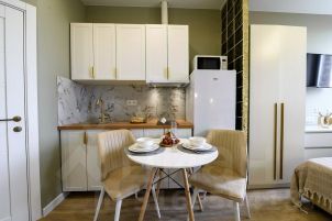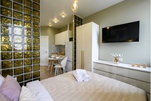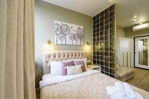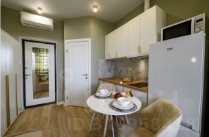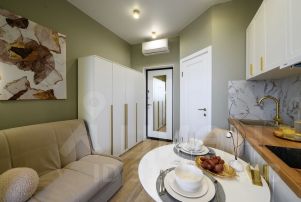 Апартамент грамотно меблирован современной мебелью и оснащен необходимой бытовой техникой.