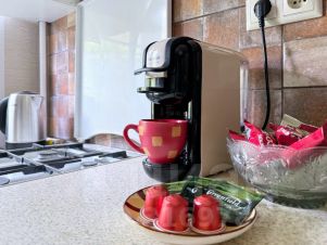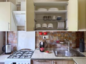 Полностью оборудована: кофе-машина, ТВ с функцией Смарт, плита, чайник, фильтр для воды, вся посуда, стиральная машинка, микроволновка, фен, утюг, гладильная доска, сушилка для белья, ролик для чистки одежды, ложка для обуви;