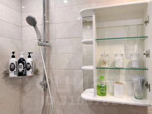 Полностью оборудованная ванная комната: полотенце для ног, шампунь, гель для душа, кондиционер, жидкое мыло;