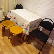 Тёплая, чистая квартира со свежим косметическим ремонтом. Кухня укомплектована необходимой мебелью, холодильником и плитой. Две смежные комнаты. В маленькой комнате есть трехстворчатый шкаф. (При необходимости его можно убрать). Имеется стиральная машина. В прихожей вешалка для одежды и тумбочка. остальную мебель по желанию можно обговаривать с собственником.