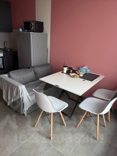 В квартире есть все необходимое для комфортного проживания: кондиционер, холодильник, телевизор и стиральная машина. Просторная кухня и комната полностью меблированы. Совмещенный санузел оборудован ванной, что добавляет удобства.