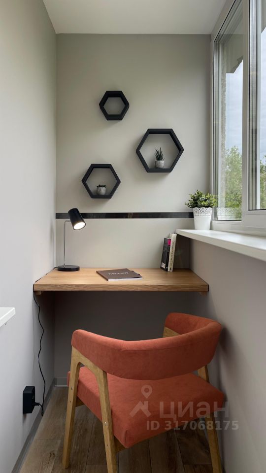 Лоджия 6кв.м. полностью остеклена и утеплена, на нее проведено электричество, свет, теплый пол по всему контуру. На лоджии оборудовано рабочее место + чил-зона с диванчиком и журнальным столиком