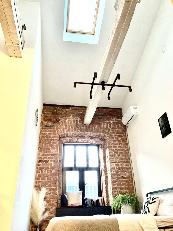 4-х метровые потолки, винтажные балки, окно в крыше -наблюдайте звезды!