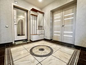 Размер квартиры с учётом двух больших лоджий (одна застеклённая, другая открытая) 74 м2. Она состоит из 2-х изолированных комнат, кухни, просторного холла, раздельного санузла и большой ванной комнаты с окном. Оборудована всей необходимой для комфортного проживания новой сантехникой и техникой (холодильник, стационарный водный фильтр, посудомоечная машина, варочная панель, духовой шкаф, микроволновая печь, кондиционеры, стиральная+сушильная машина).