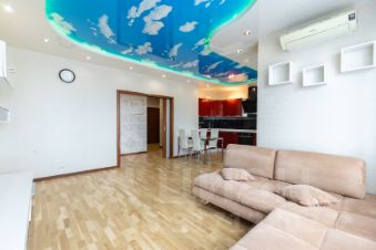 КВАРТИРА - Площадь квартиры 79,2 м2. без учета балкона, на 9-м этаже. - Две ИЗОЛИРОВАННЫХ комнаты и большая гостиная объединена с кухней. ДВА санузла: гостевой и большой с огромной ванной. - Удобная прихожая и коридор. Во всех комнатах оригинальное освещение потолка.