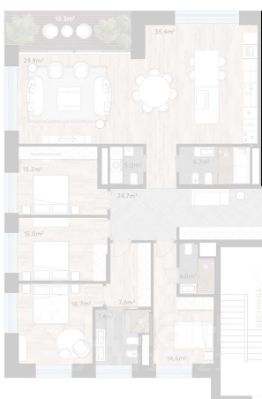 Площадь квартиры без учета летних площадей - 165,4 м.