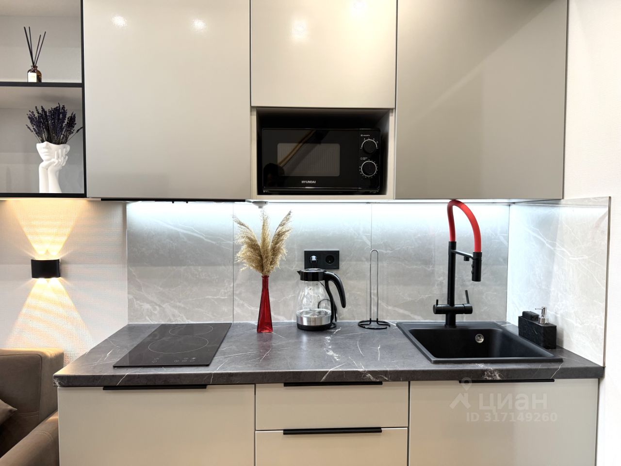 Студия оборудована всем необходимым для длительного и комфортного проживания одного или двоих человек. Общая площадь 23 м²: 14 м² первый этаж и 9 м² антресоль. Дополнительно установлена изоляция и окна с шумоподавлением. Тихий и мощный кондиционер создаст комфортную температуру за считанные минуты, шкаф-лестница вместит огромное количество личных вещей, с красивой и функциональной кухней будет удобно и приятно готовить. Индивидуальный высокоскоростной интернет 250 Мбит/сек. Система очистки воды "Барьер". Телевизор с поддержкой "Smart TV" и доступу к онлайн-кинотеатрам, а также федеральным и зарубежным телеканалам. Студия только после ремонта, вся техника и мебель новая без износа.