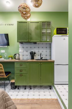 • Стильный кухонный гарнитур со всем необходимым для приготовления любимой домашней еды (техника, кухонные принадлежности, посуда, столовые приборы)