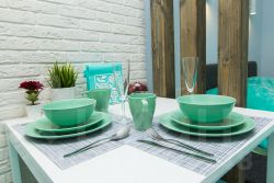 - Кухня с холодильником, плитой, микроволновкой, чайником и посудой