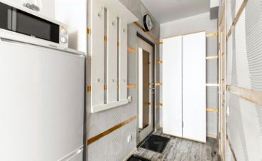 - Кухня с холодильником, плитой, микроволновкой, чайником и посудой