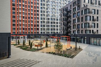 В шаговой доступности- кафе, рестораны, пекарни, маркет плейсы, магазины Пятерочка и многие другие - все это на первом этаже дома.