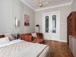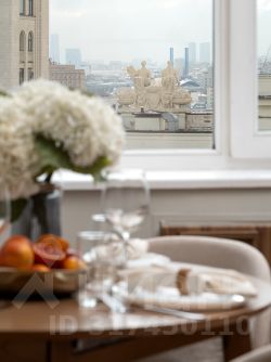 Шикарная квартира в самом узнаваемом доме среди Сталинских высоток - дом на Котельнической набережной. Этот дом является символом ушедшей эпохи, в котором история встречается с современностью. Здание стало местом съемок культового фильма Москва слезам не верит. Каждая деталь дома отражает величие и уникальность: потолки высотой 4 метра создают ощущение простора и свободы, а массивные деревянные двери являются важным элементом дизайна, задающим тон всему помещению.