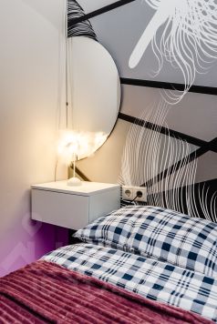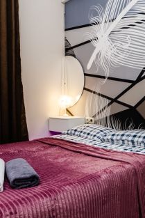 Современная мебель, двуспальная кровать, бытовая техника, скоростной WI-FI, спутниковое ТV, гладильная доска, сушилка для белья, фен, оборудованная кухня, полный комплект посуды для приготовления и приёма еды