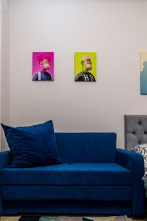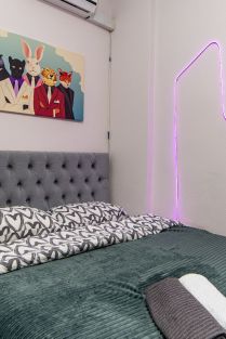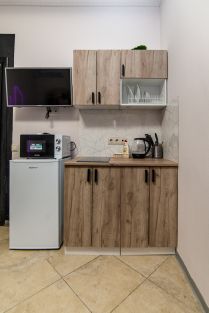 Современная мебель, двуспальная кровать, бытовая техника, скоростной WI-FI, спутниковое ТV, гладильная доска, сушилка для белья, фен, оборудованная кухня, полный комплект посуды для приготовления и приёма еды