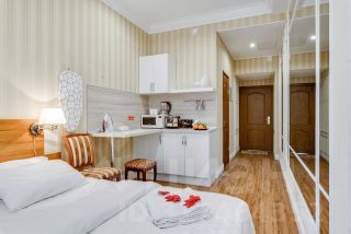Современная мебель, двуспальная кровать, бытовая техника, скоростной WI-FI, спутниковое TV, гладильная доска, сушилка для белья, фен, оборудованная кухня, полный комплект посуды для приготовления и приёма еды