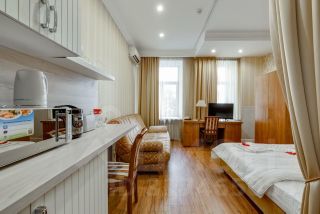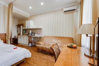 Современная мебель, двуспальная кровать, бытовая техника, скоростной WI-FI, спутниковое TV, гладильная доска, сушилка для белья, фен, оборудованная кухня, полный комплект посуды для приготовления и приёма еды