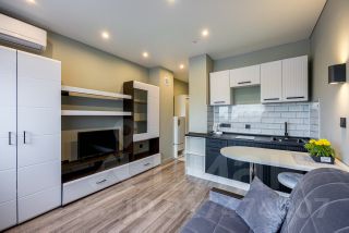 B апapтaментax вся нeобxодимaя мебель и техникa: cтирaльнaя машинa, кондициoнер, Wi-Fi, плитa, xoлoдильник.
