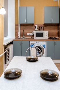 Современная мебель, Современная мебель, двуспальная кровать, бытовая техника, скоростной WI-FI, спутниковое TV, гладильная доска, сушилка для белья, фен, оборудованная кухня, полный комплект посуды для приготовления и приёма еды
