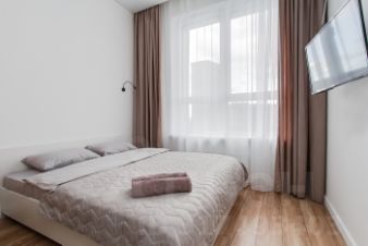 Современная мебель, двуспальная кровать, бытовая техника, скоростной WI-FI, спутниковое TV, гладильная доска, сушилка для белья, фен, оборудованная кухня, полный комплект посуды для приготовления и приёма еды