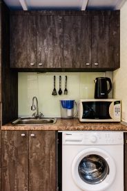 Современная мебель, двуспальная кровать, бытовая техника, скоростной WI-FI, спутниковое TV, гладильная доска, сушилка для белья, фен, оборудованная кухня, полный комплект посуды для приготовления и приёма еды