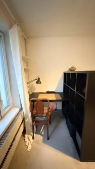 - Просторная гостиная с мебелью: диван раскладывается в полноценное спальное место с матрасом, шкаф, зона хранения, рабочее место.